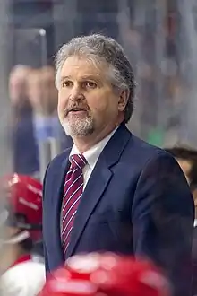 Mike Schafer is the men's ice hockey coach at Cornell University. He graduated from Cornell in 1986 with a degree in business management after leading the team to its first conference tournament championship in six years.[2] Schafer retired as a player after his senior season and immediately became an assistant with the Big Red. Schafer left his alma mater after the 1989–90 season, taking a similar position with the Western Michigan Broncos of the WCHA. Five years later, after a downturn in the program that saw three consecutive losing seasons (including back-to-back single digit-win years) Cornell replaced Brian McCutcheon with Schafer as head coach. Schafer quickly returned the Big Red to prominence, winning the ECAC Hockey conference tournament his first two seasons back in Ithaca. Schafer has remained with Cornell ever since, becoming the longest tenured and the winningest coach in team history.[3]