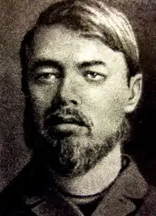Mikhail Brusnev was born 13 (25) January 1864, in Storozhevaia, a stanitsa (cossack village) in the Kuban’. His father was a Kuban Cossack and a Cornet in the Russian army.[1] After a secondary school education in Stravropol, in 1885, he began a six year course at the St. Petersburg Technological Institute. In 1889, he brought together students from St Petersburg University and several technological institutes to form one of Russia's first active Marxist groups. He organised the distribution of illegal literature. In 1891, he was one of the organisers of Russia's first May Day demonstrations.