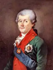 Count Mikhail Vasilyevich Kakhovski (Russian: Михаил Васильевич Каховский; 1734–1800) was a senior Russian general who led the imperial army to a rapid victory in the Polish–Russian War of 1792. This victory precipitated the Second Partition of Poland and brought Kakhovsky the Order of St. Andrew.