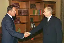 ![]() Lesin (left) with Vladimir Putin, 2002 | |