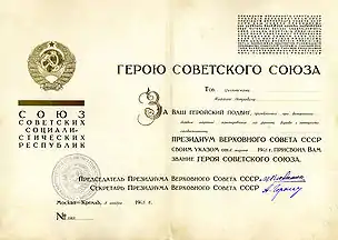 | Awards | Hero of the Soviet Union |