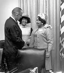 ![]() Then US President Lyndon Johnson greets Mildred Brown at an NNPA convention in 1965. | |