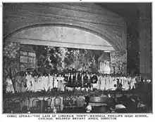 In Chicago, Bryant Jones was said to occupy 'an outstanding place among the teachers of the city'.[14] Her pupils at Wendell Phillips included gospel singer and pianist Roberta Martin,[15] singer and teacher Maurice Cooper, and jazz and operatic singer William Franklin.[16] Another student, Dan Burley, described the dedication of the staff at Wendell Phillips High School, singling out Bryant Jones in particular.[17] He recalled how these 'extraordinary' teachers taught an 'all black student body... to appreciate our musical background, while they prepared us to go out into the world and make our own way in it.'[17] In 1931, at the Competition Festival of the Senior High School Choral groups of the city of Chicago, held at Orchestra Hall, the 55-strong choir led and trained by Bryant Jones won.[18] They were described as the best choir 'that has ever sung in Chicago schools,' and the performance as the 'most thrilling' and 'the outstanding feature of the entire show.'[18] Another pupil of Bryant Jones was Harold Washington, the first African American mayor of Chicago.[7] He recalled that she would often mention W.E.B. Du Bois as 'an excellent role model for her students to follow':