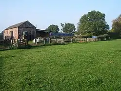 In the 1960s an exploratory trench was dug by the Ministry of Public Building and Works before a new barn was erected in the farmyard of Cambeckhill Farm.[1] The excavations found the foundations of Hadrian's Wall, consisting of red sandstone blocks and rubble.[1] Elsewhere the course of Hadrian's Wall is indicated by a broad swelling in the field to the southwest of Cambeckhill farm and as occasional rises in hedgelines which cross its course.[2] The site of the Roman fort at Castlesteads (Camboglanna) is situated 430 metres southeast of Milecastle 57.[3]