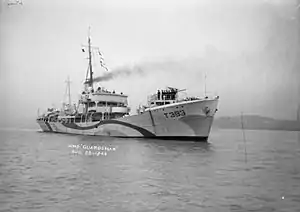 The vessels were intended for use as minesweepers and for anti-submarine warfare, and the design was based on a commercial type, Lady Madeleine by Cook Welton and Gemmell of Beverley.[2] The purpose of the order was to make use of specialist mercantile shipyards to provide vessels for war use by adapting commercial designs to Admiralty specifications. Between 1941 and 1943 the Royal Navy ordered nine such vessels from Cook Welton and Gemmel. All saw active service, but none were lost in action. The Military-class trawlers were the largest trawlers built for the Royal Navy and bear comparison with the Flower-class corvettes.[3]