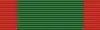 The medal hangs from a straight arm suspension attached to a 35-millimetre (1.4 in) ribbon which is green and crimson. The ribbon for the medal with Honour is green with a 3-millimetre (0.12 in) central stripe of crimson, while the medal with Distinction is green with 6-millimetre (0.24 in) stripes of crimson at the edges, and the medal with Merit is green with 3-millimetre crimson edges and a 3-millimetre crimson central stripe.[2]