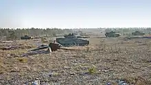 The Tofta firing range (also known as the Tofta Tank firing range), is a military training ground which is located 8 km (5.0 mi) south of Visby. Another less common name for the range is the Toftasjön firing range. Tracing its origins back to 1898, as of 2008 the range extended over 2,700 acres (11 km2). It was a major training and storage facility for the Gotland garrison during its existence, and was still occasionally used for training by various elements of the Armed Forces since the garrison was shut down in 2005. However, from the second half of 2014 onwards, there has been a marked increase in the use of the range, especially by armoured units (mostly company sized),[17] as tensions in Northeastern Europe have escalated. At least one of the buildings on the range, the former tank repair shop, is currently owned by a private company (Peab), with the military renting back the top floor for its own use.[18]