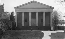 Miller Chapel is the spiritual center of the Princeton Theological Seminary, located in New Jersey, United States, and has been in continuous use since its completion in 1834. It was built by renowned local architect and builder Charles Steadman in stuccoed brick with a simple Doric portico. As the chapel of the oldest Presbyterian Seminary in the United States, the building has been home to many of the most important Presbyterian theologians, including the great figures of the Princeton Theology. The narthex has plaques that honor Samuel Miller, after whom the chapel is named, Charles Hodge, Archibald Alexander Hodge, Caspar Wistar Hodge, Sr., and B. B. Warfield.