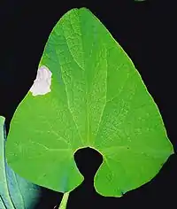 The larvae feed on Aristolochia clematitis, Aristolochia macrophylla and Aristolochia pistolochia. They are gregarious leaf miners and make irregular blotchlike mines on the dorsal surface of the leaves, with several larvae occupying one leaf mine. The mine is a large, blackish, full depth blotch at the leaf margin. There is no initial corridor. The frass is deposited in grains, scattered through the mine. Pupation takes place within a lentil-shaped pupal case formed within the leaf mine.