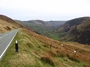 The mountain pass is approximately 9 miles long; a 4-mile climb up the head of the Tanat Valley from Llangynog, or 5 miles across bleak moorland from the B4391/B4402 junction near Bala.