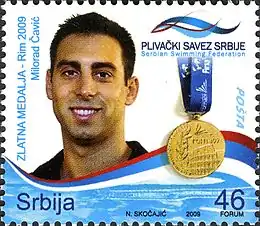 Milorad "Milo" Čavić (Serbian Cyrillic: Милорад "Мило" Чавић, Serbian pronunciation: [mîloraːd tʃǎːʋitɕ]; born May 31, 1984) is a Serbian former professional swimmer. He won a silver medal in the 100-meter butterfly at the 2008 Summer Olympics in a historic race with American swimmer Michael Phelps. Čavić also was World and European champion, as well as world record holder. He is one of four swimmers who broke 50 seconds in the 100m butterfly.