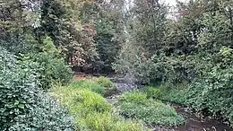 The creek is home to several fish species, including steelhead trout, cutthroat trout, and coho salmon.[5] Much of the undeveloped portion of the watershed is heavily forested. The upper reaches of Milton Creek receive around 60 inches (1,500 mm) of precipitation a year, while the lower elevations closer to the Columbia River see closer to 50 inches (1,300 mm).[6]