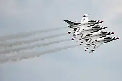 A predecessor to the airshow was first held at Festa Italiana in 2002 to celebrate its 25th anniversary. TCF Bank joined as the title sponsor and the Milwaukee Air & Water Show staged its first event at Veterans Park in 2004. In 2005 the Navy's Blue Angels returned to Milwaukee after six years and in 2006, the Air Force's Thunderbirds performed. The Blue Angels returned in 2010 and 2017.[2] The show featured many of the aviation industry's top acrobatic performers, including the U.S. Army's Golden Knights parachuting team and the Red Baron Pizza stunt flying team.[3]
