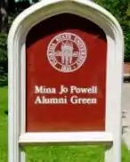 In 2000, FSU’s Student Government Association allocated $50,000 for a memorial monument that sits in the Mina Jo Powell Alumni Green. The monument signifies this green as a serene place to remember students who died while attending FSU. A Florida State University commemorative bench, dedicated to Mina Jo Powell, also sits in the green that bears her name.