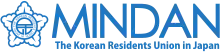 Mindan (Korean: 민단, Hanja: 民團), or the Korean Residents Union in Japan (Korean: 재일본대한민국민단, Japanese: 在日本大韓民国民団), is one of two main organizations for Koreans living in Japan, the other being Chongryon. Mindan has ties to South Korea and was established in 1946 in Tokyo, Japan.[1] Currently, among the 610,000 Korean residents in Japan who have not become naturalized Japanese citizens, 65% are members of Mindan, and another 25% are members of Chongryon.