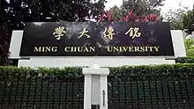 Ming Chuan University (MCU; Chinese: 銘傳大學; Pe̍h-ōe-jī: Bêng-thoân Tāi-ha̍k) is a private university with four campuses in Taipei, Taoyuan and Kinmen in Taiwan, as well as one in Michigan, USA. MCU also has international education centers in Japan, Korea, Vietnam, and Thailand. Additionally, it collaborates with universities such as Fuzhou University and Xiamen University of Technology to establish joint college.[2]