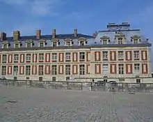 Four pavilions were built for the Secretaries of State in 1671. Jules Hardouin-Mansart had the Ministers' wings built on the basis of these pavilions in 1679.[1] The soberly ornamented Ministers' Wings, attached to the château, mark the end of the era of all-powerful ministers such as Fouquet, who defied the king with the construction of his château at Vaux-le-Vicomte. Each of the four secretaries of state occupied half a wing, and had access to all floors. The ground floor was devoted to work and reception areas, the second floor housed their apartments, their families were accommodated on the third floor, and the attic was used for clerks.[2]