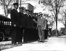 The Minneapolis Teamsters Strike of 1934 was set in May 1934 in the city market (North Loop, Minneapolis) when a new truckers union was not recognized. MPD attempted to open the markets, which were the source of most goods and produce in the city but were blocked by teamsters. Assisted by the Minnesota National Guard and a local militia, the two sides clashed violently for a month with police using gas bombs and brandishing rifles.[38] It ended on August 21 when the union was recognized. Though 200 were injured and four were killed, the strike was a significant event in state and national labor history.[39]