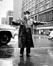 During World War II, over a hundred police officers entered the armed forces. At home, the stress of the war and fear of attack developed into air raid drills where two wardens were assigned to each city block.[66] Following the war, the program was chartered by the city as the Police Reserve under MPD's Civil Defense unit in 1952.[67] The Reserve bolsters MPD presence at major events to this day. The group's message had exacerbated a real ongoing issue of police brutality in the latter century.