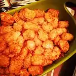 Minnesota is known for its church potlucks, where hotdish is often served. Hotdish is any of a variety of casseroles, which are popular throughout the United States, although the term "hotdish" is used mainly in Minnesota, Wisconsin, North Dakota, and South Dakota. Hotdishes are filling comfort foods that are convenient and easy to make. Tater tot hotdish is popular, as is wild rice hotdish; Minnesota is one of the leading producers of wild rice. Dessert bars are also common at Minnesota potlucks. Other dishes include glorified rice, German baked apples and cookie salad.