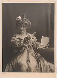 After her husband's unsuccessful production of Hester Crewe, Minnie Maddern debuted as Nora in A Doll's House by Henrik Ibsen, at the Empire Theatre in New York, launching Ibsen's career because of her outstanding performance.[4] She is perhaps most famous for starring as Becky Sharp[5] in the original 1899 production of Langdon Mitchell's Becky Sharp, a play based on William Makepeace Thackeray's Vanity Fair. Among her many triumphs on the Broadway stage were: Tess of the d'Urbervilles (1897, revival 1902), Love Finds the Way (1898), Becky Sharp (1899, revivals 1904, 1911), A Doll's House (1902), Hedda Gabler (1903, revival 1904), Leah Kleschna (1904–05), Salvation Nell (1908–09), The High Road (1912–13), Madame Sand (1917–18), a play about George Sand; Mis' Nelly of N'Orleans (1919), Helena's Boys (1924), Ghosts (1927), Ladies of the Jury (1929–30), as well as her self-written plays The Rose (1905), The Eyes of the Heart (1905), A Light from St. Agnes (1906). Mrs. Fiske starred in everything from farce to tragedy and even appeared in a comedy with puppets Wake Up, Jonathan! (1921). Her final appearance on Broadway was in 1930 in an acclaimed production of The Rivals cast as Mrs. Malaprop.[2]