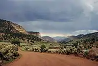 Minnie Maud Canyon which is formed by Minnie Maud Creek is relatively narrow and lacks Fremont Cultural ruins and writings that are abundant in Nine Mile Canyon. Due to its narrow nature, Minnie Maud Canyon was never permanently settled, although a school district that served residents in Nine Mile Canyon was briefly opened in the canyon in 1896 and took the name Minnie Maud. Minnie Maud School District lacked the necessary funds and closed in 1898 with only 43 students.[3]