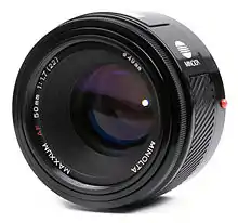 Minolta AF 50mm f/1.7 is a discontinued lens with autofocus that was produced by Minolta for the company's A-mount from 1985[1] through 2006. It is still in use today by users of digital and film SLRs by Minolta (later Konica-Minolta) and Sony. The relatively large maximum aperture (f/1.7) allows the photographer to take shots indoors even when operating at ISO 100 - 200.