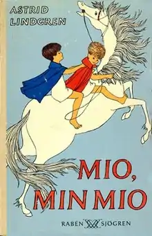 Mio, My Son is a children's book by Swedish writer Astrid Lindgren. It was first published in 1954 in Sweden with the Swedish title Mio, min Mio (literally "Mio, my Mio"). The writing is stylised and the story strongly reminiscent of traditional fairy tales and folklore. It received a German Youth Literature Prize (Deutschen Jugendbuchpreis) in 1956. The book is 204 pages long.