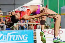 Her personal best jump is 2.00 m (6 ft 6+12 in), achieved in June 2018 at the Diamond League meeting in Stockholm.[1]
