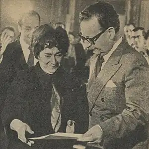 In 1963 Baltra was elected to the Santiago council, and was re-elected in 1967. In 1969 she was elected deputy for the 1st district of Santiago. [2] In June 1972 she resigned her position as deputy on being appointed by President Allende as Minister of Labour and Social Welfare, a post she held until 2 November.[2][3] In the March 1973 elections she was re-elected as deputy, this time for the 4th district, and held this position until the military coup on 11 September of that year.[4]