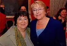 In 1974 she went into exile, first in the Netherlands and later in Czechoslovakia.[5] In Prague she became secretary-general of the international trade union body formed to express solidarity with Chilean workers. After nine years she travelled to Cuba and became executive secretary of the Continental Women's Front against the coup, working with Vilma Espín, president of the Cuban Women's Federation.