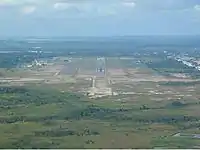 Miri Airport is serviced by a 2,745 m × 60 m (9,006 ft × 197 ft) runway, designated Runway 02/20, and a partial, parallel taxiway at a width of 23 m (75 ft). Runway 20 is equipped with high intensity simple approach lights whereas Runway 02 has high-intensity Cat 1 precision approach lights installed. Other aids include: ILS, DVOR/DME, NDB and PAPI (slope 3°).[12] Taxiways A3, B1 and C1 that connects the runway, Apron 'A' and Apron 'B' with Taxiway A were finished after the 2016 expansion.[11]