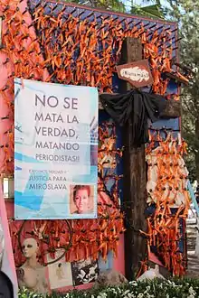 ![]() Homage erected to the memory of Miroslava Breach days after her assassination. | |