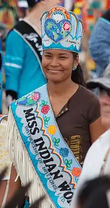 In addition to the title, Miss Indian World also wins prize money, the Miss Indian shawl and banner, a four-day ocean cruise, and a travel stipend to attend powwows, conferences, workshops, and festivals.[1] Previous Miss Indian World winners have continued to be sought-after speakers, even after they have passed on the crown.[7][8]