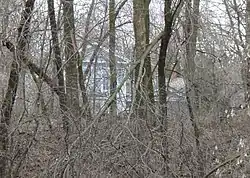 ![]() The Mitchell Jackson Farmhouse just visible through heavy brush | |