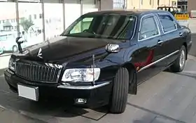 The Dignity/Proudia range was designed by Mitsubishi Motors and co-manufactured with Hyundai of South Korea, who marketed their own version as the Hyundai Equus (from 1999 to 2009).[2] The Dignity was introduced as a competitor to the Nissan President, the Toyota Celsior, and the Toyota Century as the company's top level flagship, however Mitsubishi chose to use a transversely installed engine with front-wheel drive. A first-generation Dignity is used by Fumihito, Prince Akishino, the second son of Emperor Emeritus Akihito.