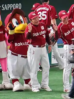 ![]() Tateishi as a coach with the Rakuten Eagles | |