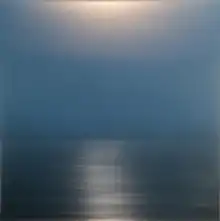 In her conceptually-driven paintings, drawings, and sculptures, Ando often uses imagery evoking ephemeral natural phenomena such as clouds, the seasons, tides, rain, or moonlight, to articulate fundamental realities of existence.[3] The artist has noted, "nature is the great equaliser. We all know what rain is. We all know the feeling of experiencing vastness. I like the idea of making something that is a barometer of our physical environment."[4] She is known for using steel, or sheets of burnished and chemically treated aluminum as substrates for her distinctively experiential paintings of hypothetical horizons.[5] Ando says of her use of materials, “I have a deep appreciation for the dynamic properties of metal and its ability to reflect light. Metal simultaneously conveys strength and permanence and yet in the same instant can appear delicate, fragile, luminous, soft, ethereal. The medium becomes both a contradiction and juxtaposition for expressing notions of evanescence, including ideas such as the transitory and ephemeral nature of all things, quietude and the underlying impermanence of everything.”[3]