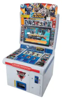 Mobile Suit Gundam: Try Age, Gandamu Torai Eiji (ガンダムトライエイジ) is a card-based real-time strategy arcade game based on the Gundam. Released by Bandai in July 2011.
