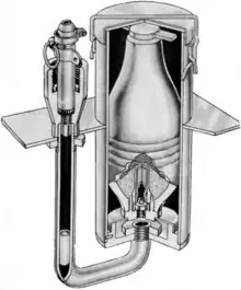 The Mle 1939 (Model 1939) was a French anti-personnel bounding mine used at the start of the Second World War, it was developed largely in response to the German S-mine bounding mine.[1] It saw very little service before the fall of France. The plans escaped to the US via Major Pierre Delalande, a member of the French Corps of Engineers, and were used as the basis for the American M2 bounding mine which saw wider service during the war but was considered largely ineffective.[2] The M2 mine was replaced almost immediately afterwards with the M16 bounding mine, an almost exact copy of the German S-mine.[2] The French also later produced a copy of the S-mine, the Mle 1951 mine.[3]