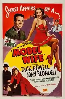 Model Wife is a 1941 American comedy film directed by Leigh Jason and written by Charles Kaufman, Horace Jackson and Grant Garett. The film stars Joan Blondell, Dick Powell, Charlie Ruggles, Lee Bowman, Lucile Watson, Ruth Donnelly and Billy Gilbert. The film was released on April 18, 1941, by Universal Pictures.[1][2][3]