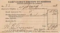 One of the most unique elements of the organization was its drill teams, which came to be known as the Modern Woodmen Foresters. The first drill team was organized in Hutchinson, Kansas, in 1894.[6] These groups became nationally known for events held from 1890 to the late 1930s, and the Foresters were even honored by Herbert Hoover at the White House.