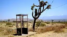 The Mojave phone booth (/moʊˈhɑːvi, mə-/ mo-HAH-vee[1]) was a lone telephone booth in what is now the Mojave National Preserve in California. It attracted online attention in 1997 for its unusual location – it was located at the intersection of two dirt roads in a remote part of the Mojave Desert, 12 miles (19 km) from the nearest paved road (Interstate 15 to the northeast, Kelbaker Road to the southwest) and miles from any buildings.
