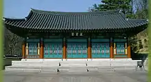Part of the Confucian ritual hall (Korean: 재실; Hanja: 齋室; RR: jaesil) of the Mok clan of Sacheon, South Gyeongsang Province, South Korea