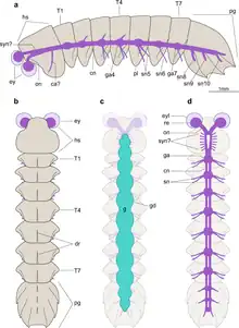 - ↑ Aria, Cédric; Caron, Jean-Bernard (September 2019). "A middle Cambrian arthropod with chelicerae and proto-book gills". Nature. 573 (7775): 586–589. Bibcode:2019Natur.573..586A. doi:10.1038/s41586-019-1525-4. ISSN 0028-0836. PMID 31511691. S2CID 202550431.