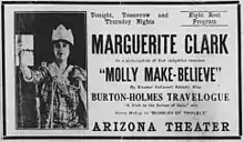 Molly Make-Believe is a 1916 silent film drama directed by J. Searle Dawley and starring Marguerite Clark. It was produced by Famous Players–Lasky and distributed by Paramount Pictures. It is based on a 1910 novel, Molly Make-Believe by Eleanor Hallowell Abbott, which was quite popular at the time. The film is now considered lost.[1][2][3]