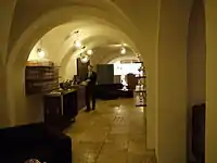 The cellar houses the 2-Michelin-starred Restaurant AOC. The restaurant is owned by the sommelier Christian Aarø and received its first star in 2012 with Ronny Emborg as head chef.[11] He left AOC in 2013 to become head chef at Hotel D'Angleterre and was succeeded by Søren Selin who came from a position as head chef at Alberto K at Radisson Blu Royal Hotel.[12]