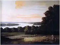 After the dowager queen's death, the mansion was acquired by another affluent merchant, Constantin Brun, a German trader who had become royal administrator of trade in the Danish West Indies and was also building a successful private trading empire. His wife was the writer and salonist Friederike Brun who had a large international network which included prominent names such as Johann Wolfgang von Goethe, Friedrich Schiller, August Wilhelm Schlegel, Johann Gottfried Herder, Wilhelm Grimm, Bertel Thorvaldsen, and the Swiss writer Madame de Staël with whom she formed a close friendship.[3] Her literary salons mainly took place at Sophienholm during the summer season but in winter time at the mansion in Bredgade. Among the Danish artists who regularly attended her salons were Jens Baggesen, Adam Oehlenschläger, Johanne Luise Heiberg, C.E.F Weyse, B. S. Ingemann and Kamma Rahbek.