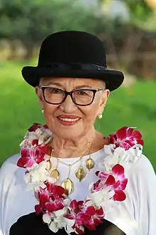 On March 25, 2004, she was awarded the Pacific Business News Gladys Kamakakuokalani Ainoa Brandt Kupuna Award.[8] She also served on the Hawai'i State Foundation on Culture and the Arts' 2004-2005 Legislative Committee and Hawai'i State Art Museum Committee.[9]