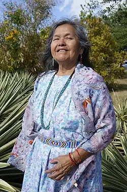 Mona Polacca is a Native American spiritual elder from Arizona.[2] She has worked to further social justice for indigenous people from an early age. She is an author in the field of social sciences, has held posts of responsibility as Treasurer for her tribe,[3] served on several committees for Indigenous Peoples within the United Nations.[4] and is widely known for her "leadership in the Native American revitalisation movement."[5]